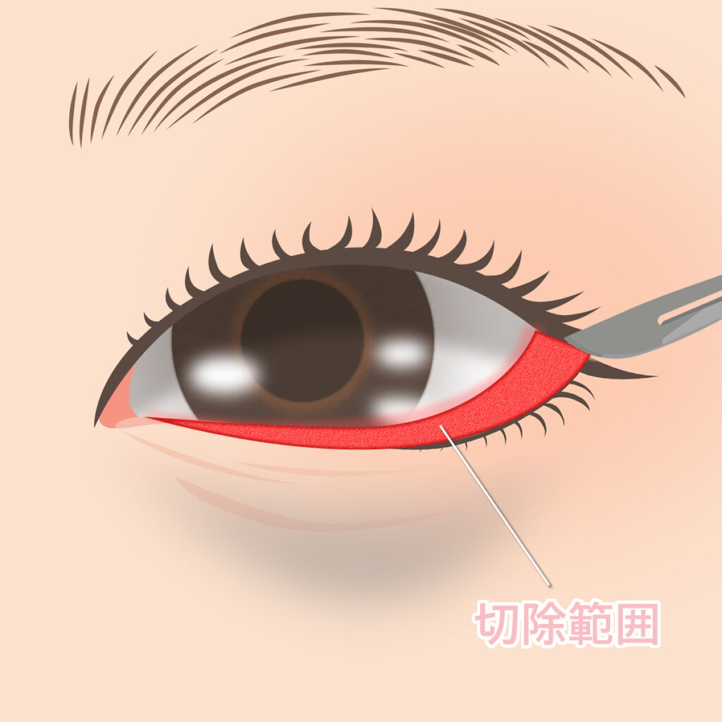 まつ毛の生え際付近で丁寧に切開を行い、余分な皮膚を適切に切除します。