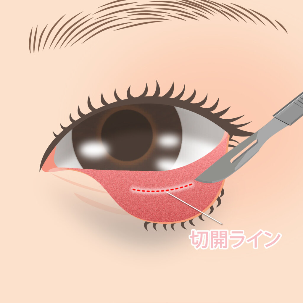 結膜側からのアプローチを行うため、皮膚表面に傷跡は残りません。