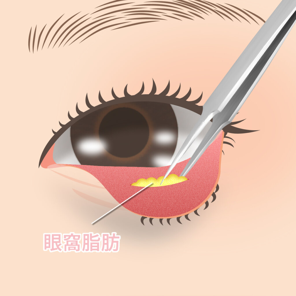 下まぶたの裏側(結膜)からアプローチを行い、突出した眼窩脂肪を丁寧に除去していきます。
