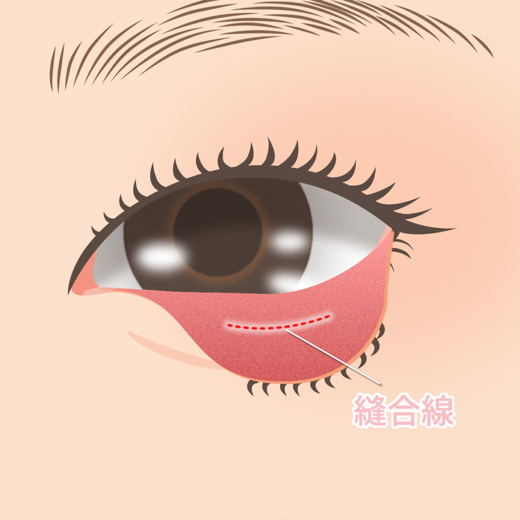 縫合します。結膜側を縫合するため、皮膚表面に傷跡は表れません。