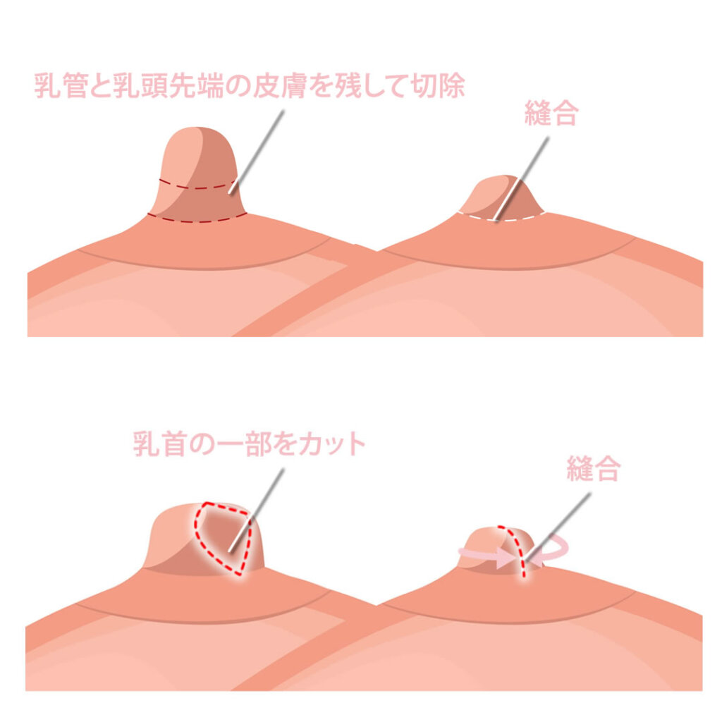 乳頭縮小であれば、乳頭の大きさや左右差、高さ(長さ)などを調整することができます。