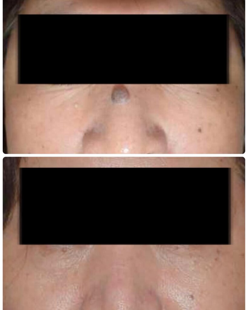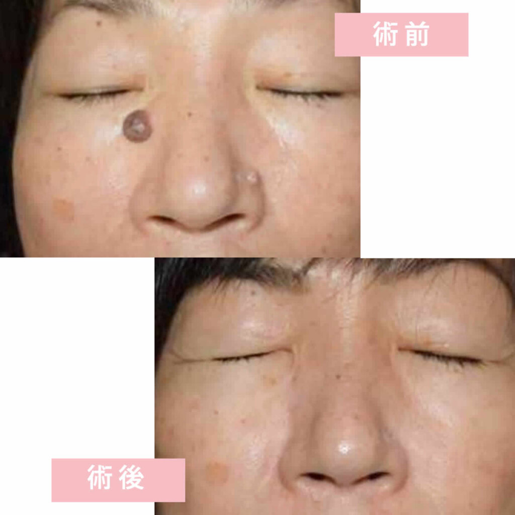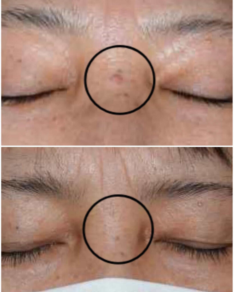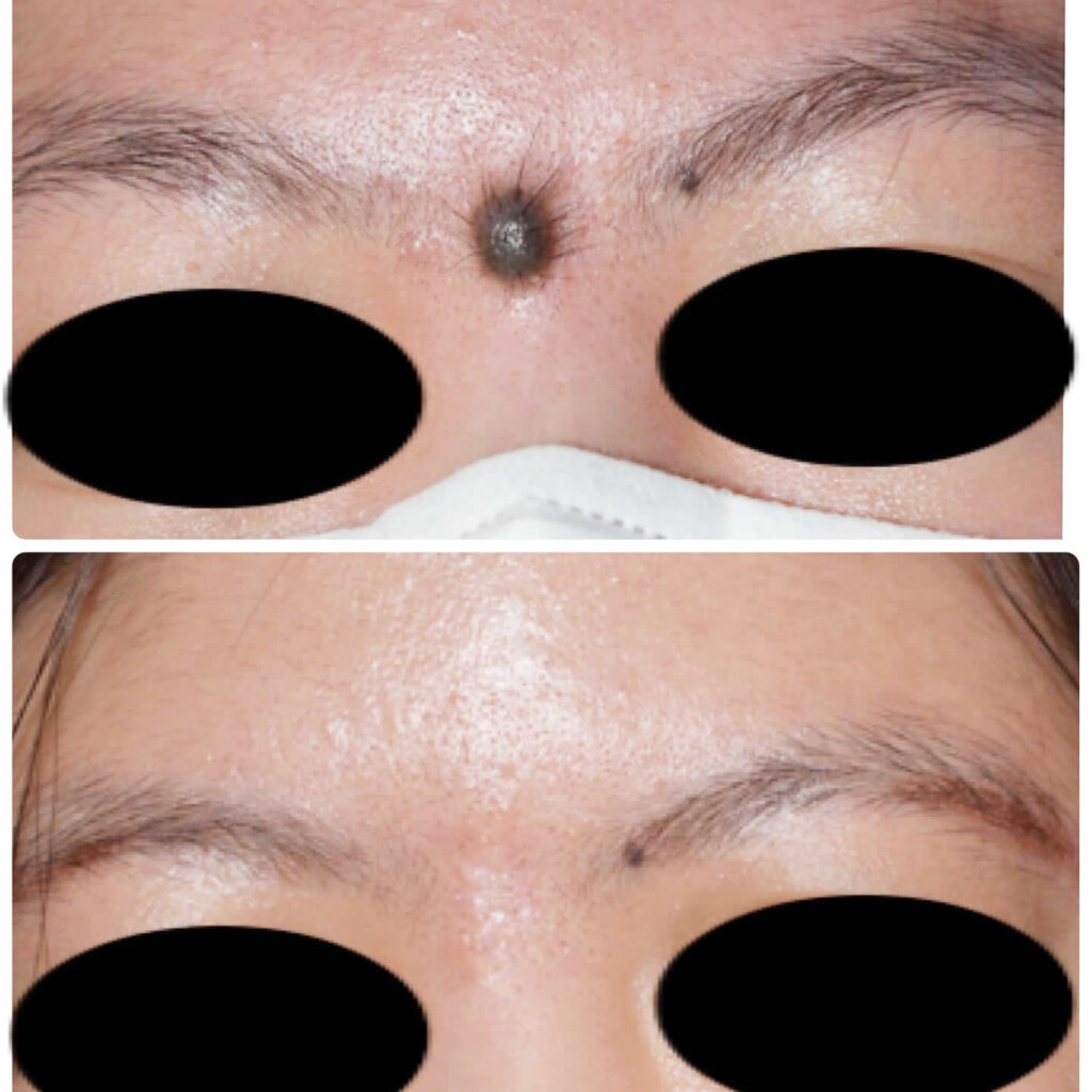 眉間の大きめなホクロの切除除去の症例です。