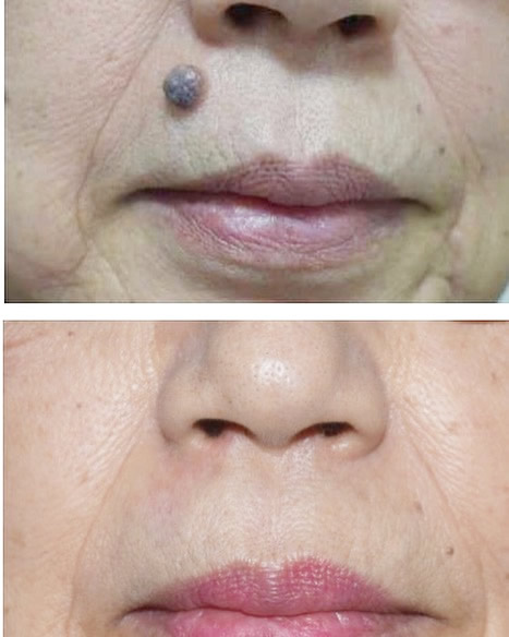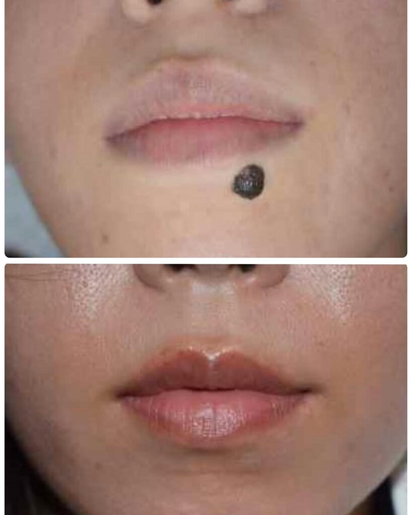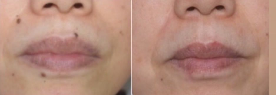 右頬と上口唇のホクロ除去の症例