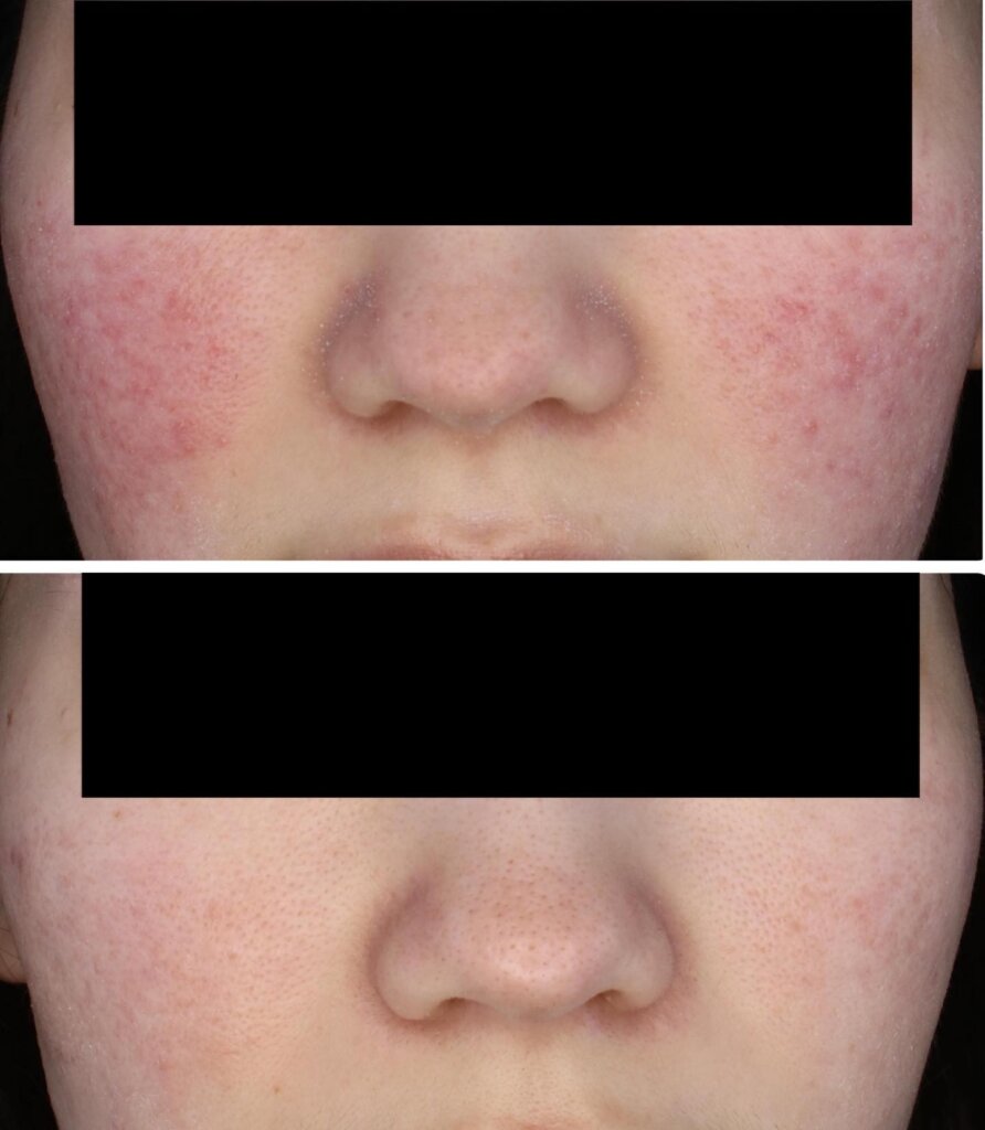 毛細血管の拡張により、顔の赤みが増した状態には、血管をターゲットにした治療で赤みの程度を改善させます。個人差はありますが、3~5回ほどの治療でピーク時の赤みの改善が実感できます。
