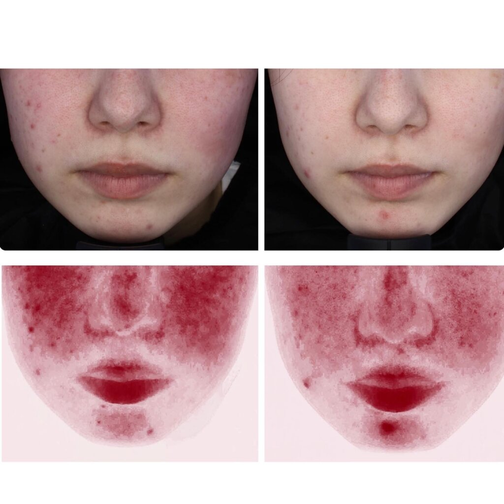 繰り返すにきびの炎症と酒さ(赤ら顔)を治療した症例写真です。