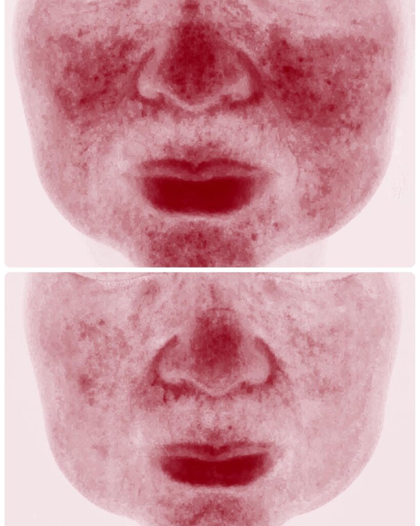 酒さ(赤ら顔)を光治療2回とロゼックスゲル0.75%(2ヶ月投与)した症例写真です。