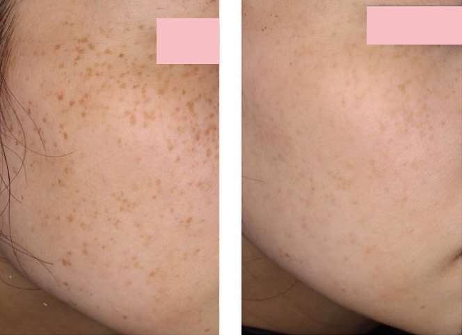 のコンピネーション治療を行います。この症例はコンビネーション治療で1回目が終わった段階のお写真です。写真からも、そばかすが薄くなっていることがわかります。
