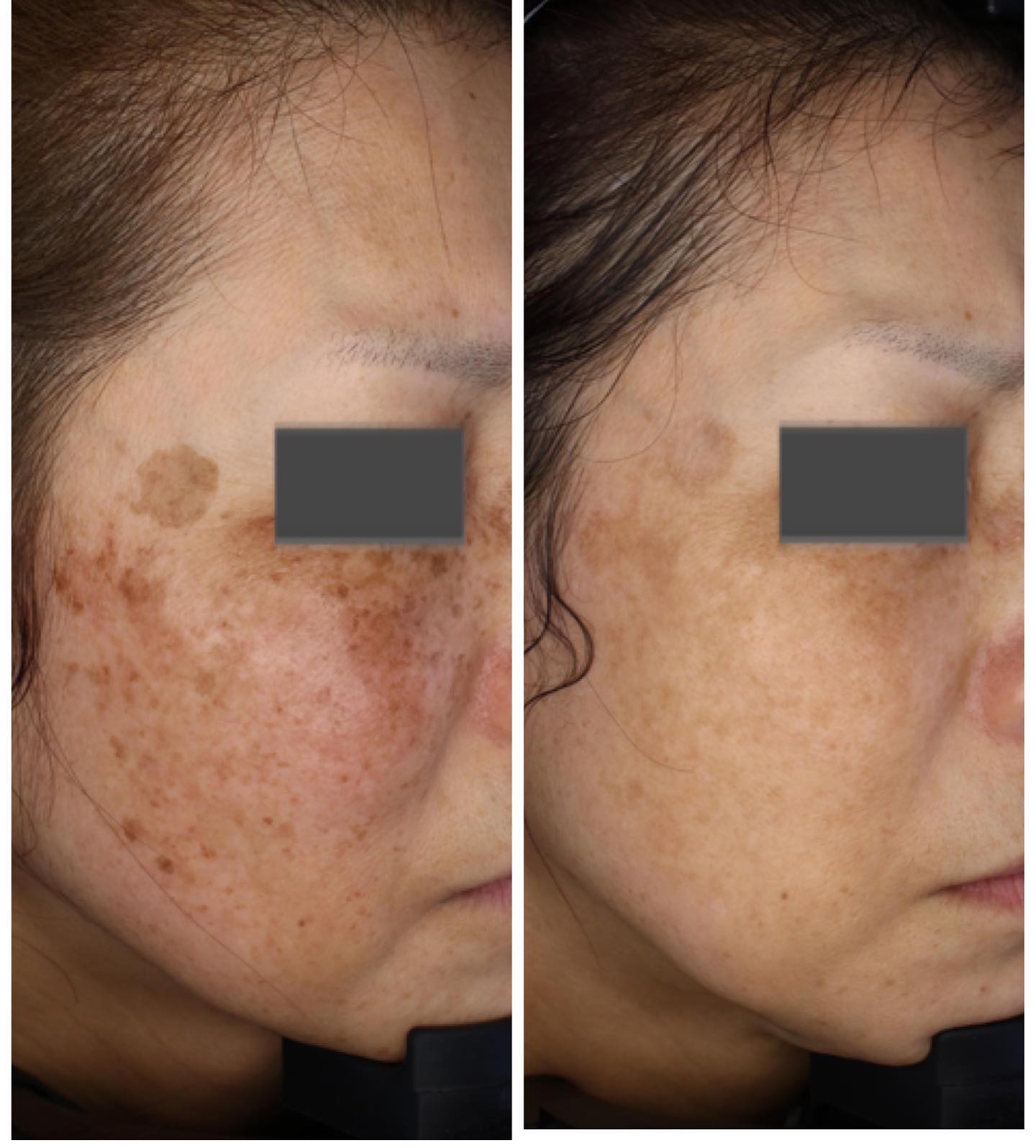 太田母斑とシミ(老人性色素斑)の治療の症例です。