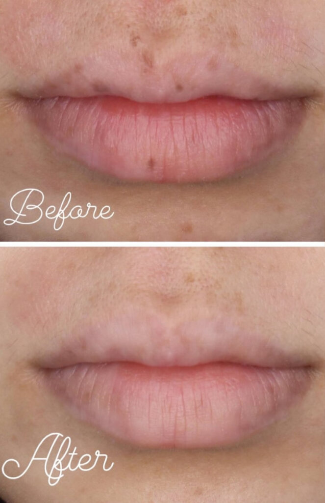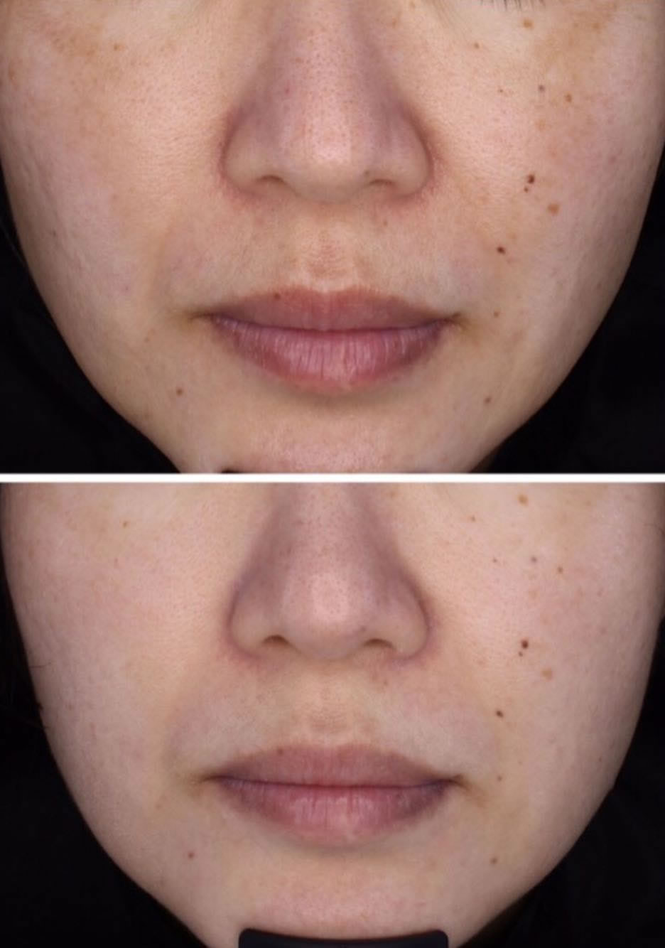 この症例はシミ治療の1週間後と1ヶ月後の症例です。このように1ヶ月後にはほとんどわからなくなります。