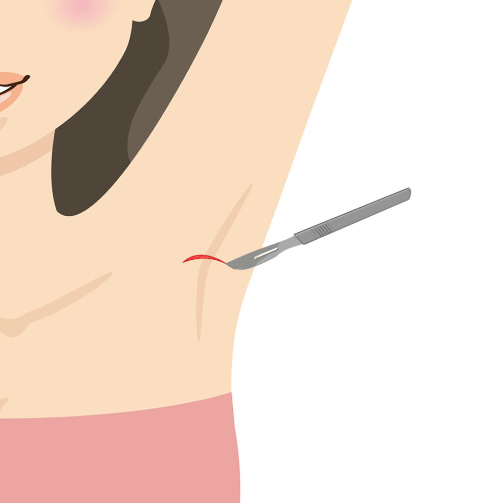 わきの下のしわに沿って3〜5cm程度の切開を行います。